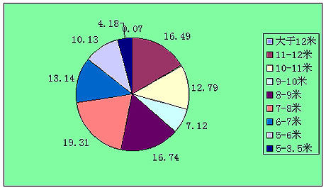 2、05年1~4月8~9米产品所占比例为16.74%,处于第二,06年1~4月份8~9米产品占的比例为16.63%,尽管比例有所下降,但仍然处于第二。
