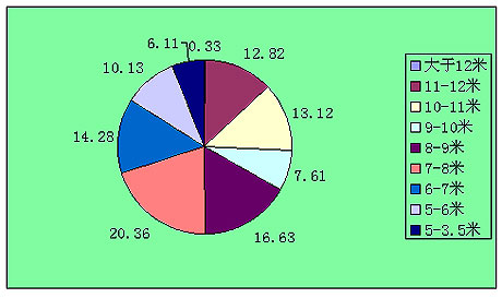 8、06年1~4月份,5~6米的产品虽然在量上比05年同期有所增加,但所占底比例有所下降,这说明了一方面5~6米的产品有发展空间,明白市场当然主要在