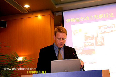 Kevin Beaty先生向与会嘉宾介绍混合动力客车产品动力总成
