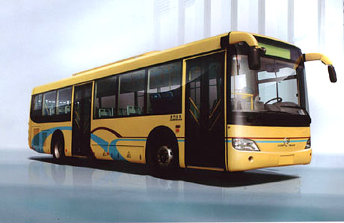 这款客车是金旅公司新研发的11米混合动力电动城市客车。该车采用并联式的两套驱动系统,其一为发动机驱动系统,通过离合器经过电动机转子带动驱动桥;其二为电动机驱动系统,蓄电池经过电机控制器给电动机提供能量,由电动机带动驱动桥;两套驱动系统在特定的条件下可以实现分别控制或共同驱动。