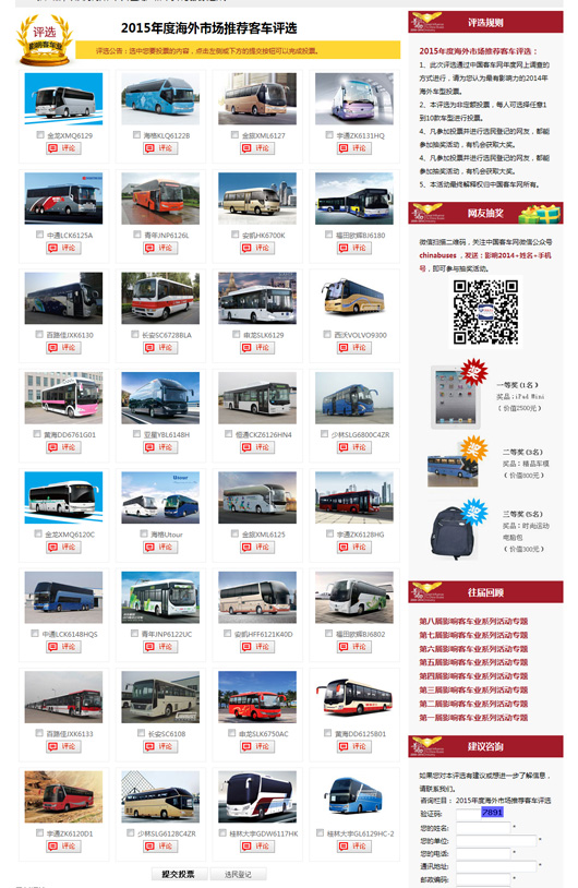 “2015年度海外市场推荐客车评选”页面