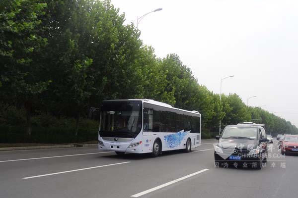 2015年8月29日,配置有2个摄像头、4部激光雷达、1部毫米波雷达以及组合导航系统的宇通大型客车在全开放环境的郑开大道上由西向东安全行驶了32.6公里,途径26个信号灯路口,完成了跟车行驶、自主换道、邻道超车、自动辨别红绿灯通行、定点停靠等试验科目,顺利到达测试终点。