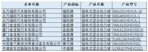 本批申报的9款插电式混合动力客车,福田欧辉有3款产品,金旅客车有3款,申龙、中通、重汽豪沃各占1款。