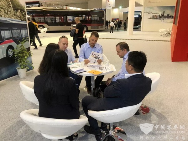 “新巴客”优异的性能表现,吸引了多位欧洲客商前来商务洽谈、订购车辆。一位来自法国的客商说:“曾经在巴黎,偶然远处看到你们的车,今天近距离见到了,真的很棒!”