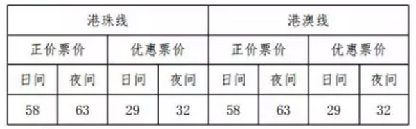 在珠海、香港、澳门三地口岸均可乘坐穿梭巴士,票价如下: