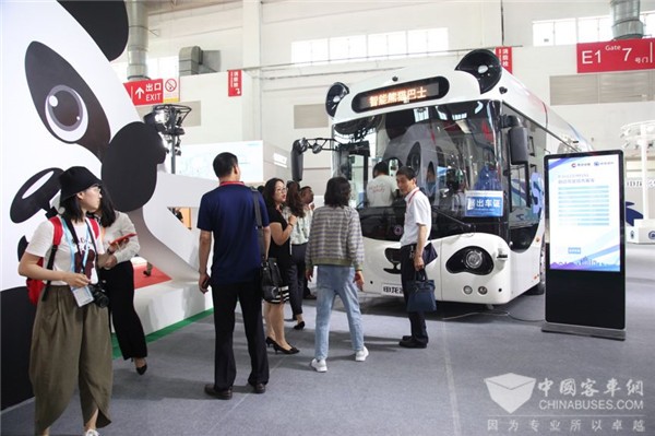 展会期间,组委会众多领导、行业媒体等来到展位参观熊猫公交,熊猫公交灵动的神态、可爱的外表设计,引得众人交口称赞,在众多参展展车中被媒体评为全场“颜值之最”。