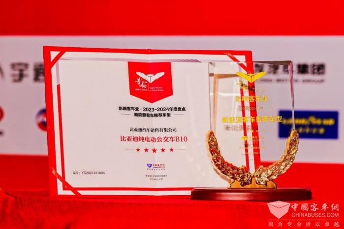 2024年1月19日,第十八届影响中国客车业年度盘点颁奖典礼在安徽合肥举行。比亚迪商用车成功蝉联“中国客车行业品牌成就奖”,在产品端,比亚迪纯电动公交车B8荣获2023-2024年度“微循环公交之星”,纯电动公交车B10获评“新能源客车推荐车型”,表现出超强产品力及品牌影响力的同时,为商用车行业高质量发展注入澎湃动能。