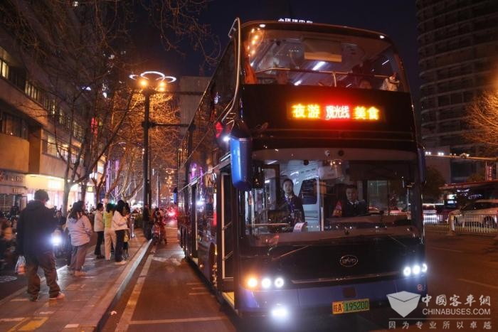比亚迪B12D投放在合肥公交“双层巴士夜游观光线”