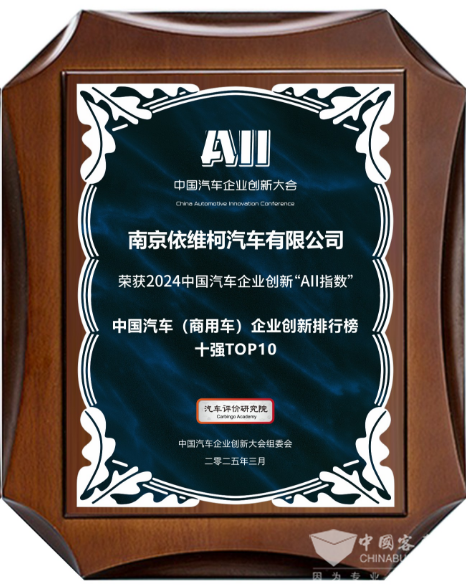 2025年3月21日,汽车评价研究院在上海举办的第八届中国汽车企业创新“安亭指数”正式发布。南京依维柯凭借优秀的创新能力,荣获中国汽车(商用车)企业创新排行榜TOP10和中国汽车(商用车)企业创新排行榜客车企业TOP5荣誉,为商用车行业创新树立了典范。