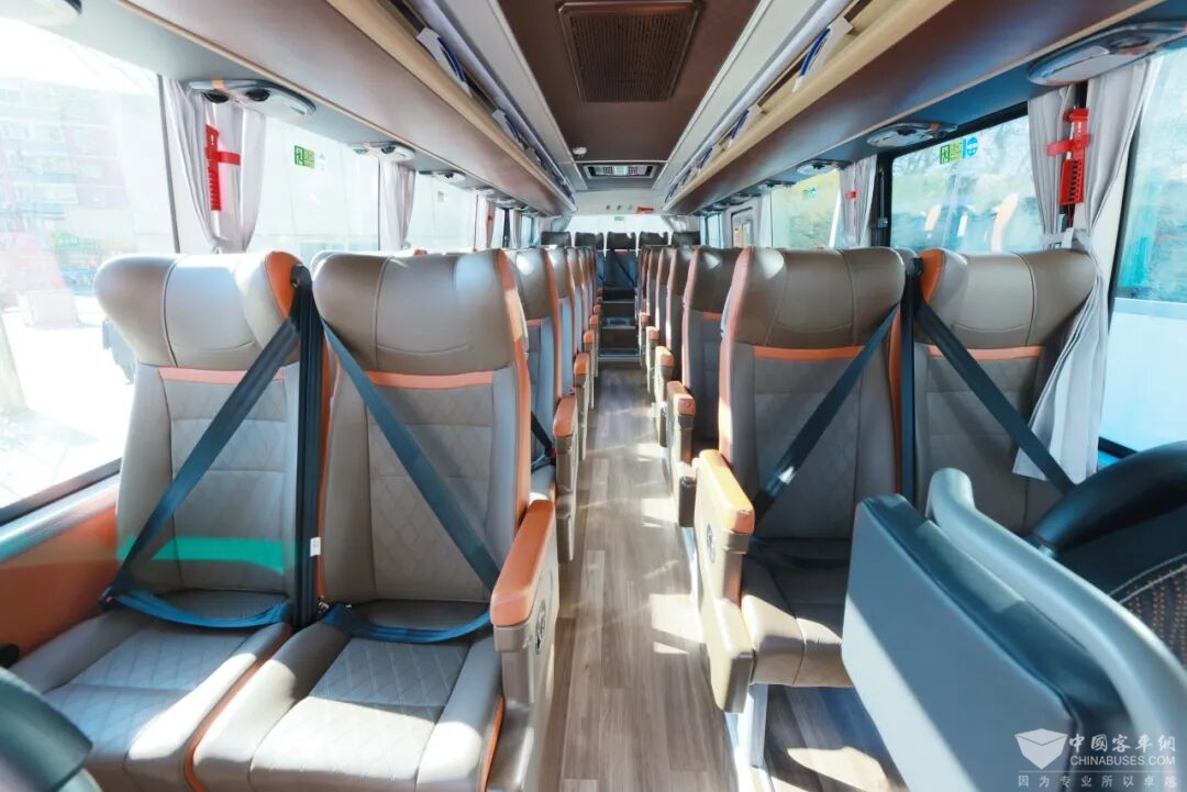 作为面向高端旅游市场的“陆地头等舱”,欧辉BJ6122集节能高效、臻美舒适、安全防护、智能车载于一体。其外观融合现代美学与地域文化元素,内饰豪华且空间宽敞,配备人性化行李架、双密度海绵座椅及智能温控系统。