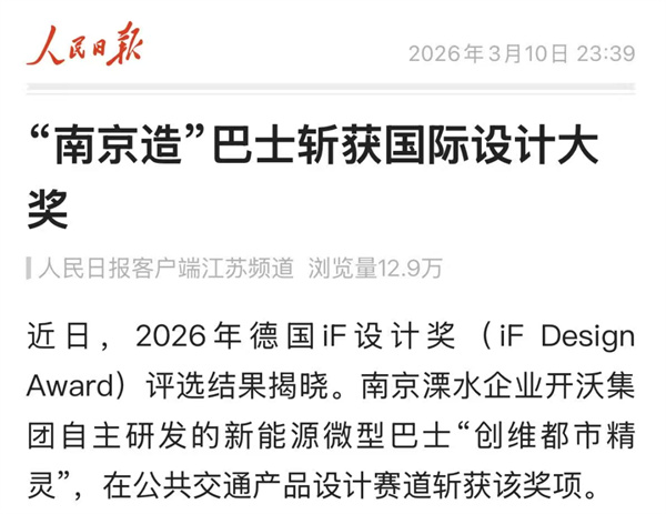 据客车网2026年3月20日获悉,近日,人民日报客户端报道,对创维都市精灵斩获国际iF设计大奖的突破性成果予以高度评价 。