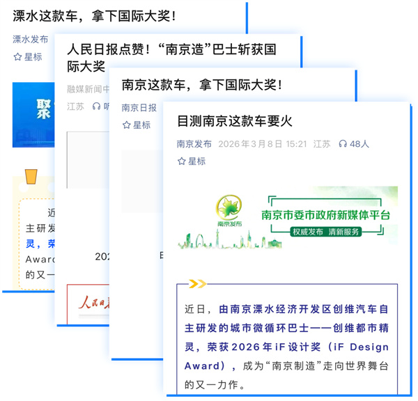 此外,南京发布、南京日报、南京新闻、溧水发布等多家权威媒体竞相报道,共同见证这款“南京制造”的成长轨迹。