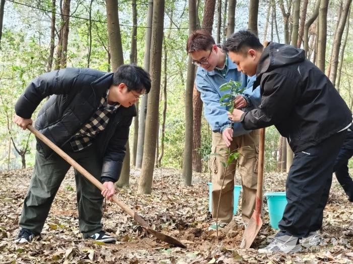 索道分公司团总支联合南岸区南山街道放牛村社区组织开展“呼吸鲜氧·种植希望”志愿服务活动。植树过程中,大家充分发扬雷锋精神,不怕脏、不怕累,分工协作、互相帮助,现场一片热火朝天的劳动景象。经过一上午的努力,共种植了22棵树苗,为南山林场增添了一片新绿。