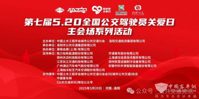 今年“第七届5.20全国公交驾驶员关爱日活动”将在洛阳举行。中国土木工程学会城市公共交通分会、洛阳交通投资集团有限公司联合主办,洛阳市公共交通集团有限公司为承办单位。届时,有来自全国70余家公交企业领导、行业协会代表等200余位出席。江苏镇江公交和四川省城市公共交通协会在成都市,分别作为分会场,与洛阳主会场联动直播。