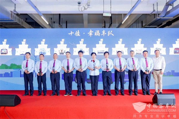 在表彰环节,首届“十百千幸福联动计划”获奖代表先后依次登台接受荣誉表彰。该计划自2024年启动以来,围绕“幸福六站”体系,精心选拔出“十佳·幸福车队”“百优·幸福线路/班组”以及“千星·幸福达人”,依据“爱自己、爱家人、爱岗位、爱伙伴、爱集体、爱乘客”的六爱准则,发掘了500位幸福达人、46条幸福线路、10个幸福班组和10个幸福车队,使“幸福”这一概念变得具体而生动。
