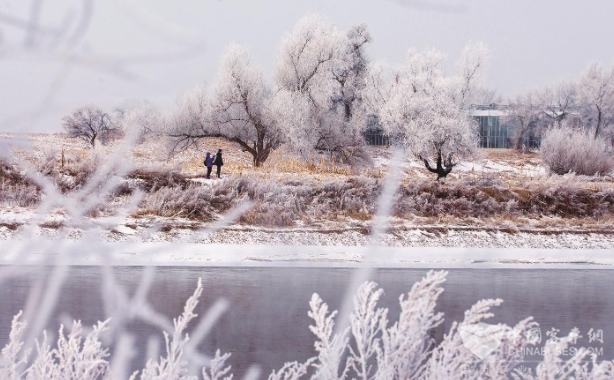 吉林市龙潭区雾凇岛出现绝美雾凇景观,大地银装素裹、岸边玉树琼花,吸引游客前来拍照打卡。