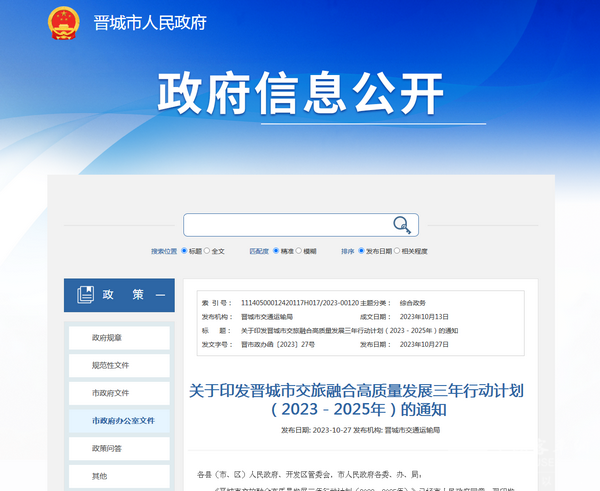 关于印发晋城市交旅融合高质量发展三年行动计划(2023-2025年)的通知