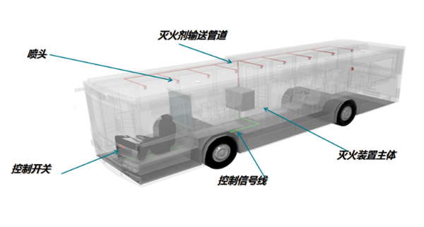 公共汽车客舱灭火系统由中航中科消防科技(北京)有限公司研发,北京世纪联保消防新技术有限公司制造,品牌“航科”。该系统汇集了中国航天和中国科学院多项高新技术,是针对客舱火灾特点专门研制的。系统启动时,灭火剂直接作用于火焰,10S内控火,灭火效果突出。