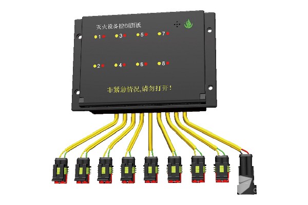 第二部分:中控盒。接收探测模块发来的报警信号,向驾驶员发出声光报警提示,驾驶员可以根据报警信号,按下中控盒内的手动启动按钮,实现远程灭火。