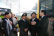 建设部科技委城市车辆专家委员会主任李世豪、北京公共交通控股(集团)有限公司董事长郑树森及各公交公司领导一起参观城市车辆展示会