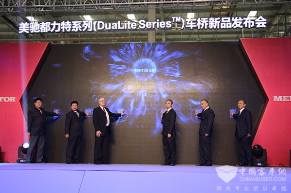美驰中国区董事总经理Robin Rehel,徐工集团副总经理、徐州美驰车桥有限公司副董事长杨勇,美驰全球技术总监Tomaz Varela,中国道路与运输协会城市客运分会副秘书长吴同起、江淮汽车重型车研究院院长周福庚,北京福田戴姆勒汽车采购副总裁张红松等嘉宾,江淮汽车、重庆铃木、青岛一汽、东风柳汽、山西大运、宇通客车、苏州金龙、厦门金龙、厦门金旅、上海申沃、上海申龙、凯马百路佳、扬州亚星、北方客车、丹东黄海等整车企业代表,卡客车经销商代表,以及媒体朋友共同见证美驰车桥新品发布,零距离感受科技力量。