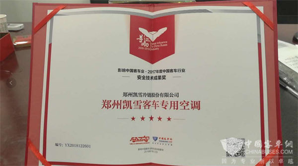影响中国客车业 凯雪空调获“中国客车行业-安全技术成果奖”