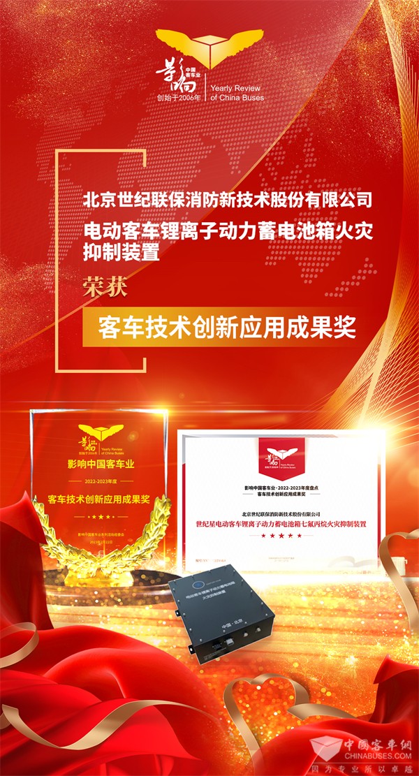“客车技术创新应用成果奖”:世纪星电动客车锂离子动力蓄电池箱七氟丙烷火灾抑制装置