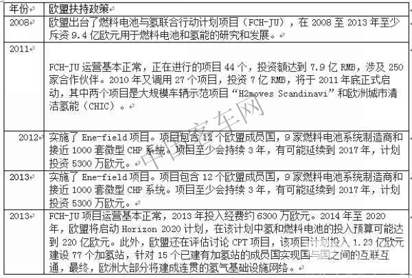 欧洲燃料电池行业扶持政策