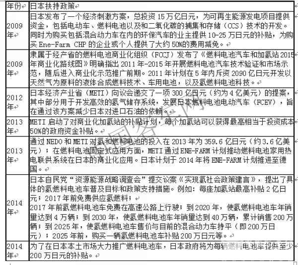 日本燃料电池行业扶持政策