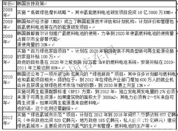 韩国燃料电池政策