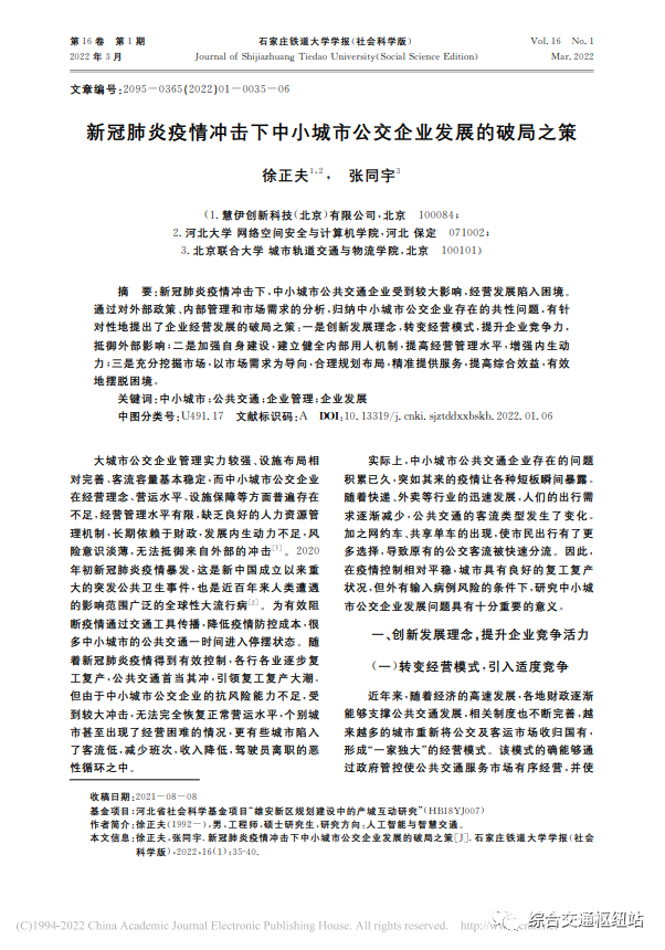 - 学术:新冠肺炎疫情冲击下中小城市公交企业发展的破局之策[10-17]
