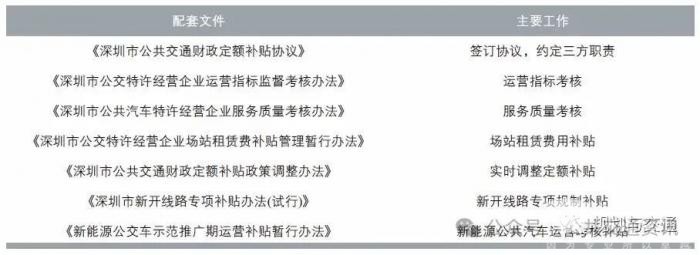 2013 年,深圳市财政和交通两个部门联合制定并实施定额补贴政策(见表4),其核心是政府以财政补贴的方式向市民提供公益性公共汽车服务。政府通过核定企业服务规模,并按照运营指标及服务质量考核结果,核定企业的年度财政补贴总额,实现公益性服务和激励企业增收节支。表4 深圳市公共汽车财政定额补贴政策实施方案![]()