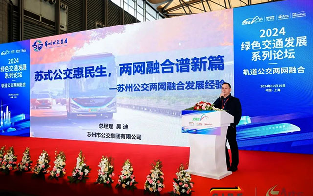 2024年12月19日,备受瞩目的“2024绿色交通发展系列论坛”在上海新国际博览中心盛大开幕。本次论坛由中国土木工程学会城市公共交通分会主办,吸引了众多行业专家和业内人士齐聚一堂,共同探讨绿色交通的未来发展方向。苏州公交集团党委副书记、总经理吴迪受邀出席此次论坛,并发表了题为“苏式公交惠民生,两网融合谱新篇”的精彩演讲,他深入分析了苏州公交推进“两网融合”的背景、举措和成效,赢得了现场专家和同行的一致好评。